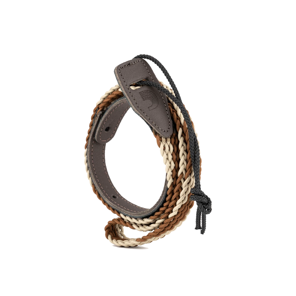 The D’Addario Leather Mandolin Strap line features premium leather that is safe for all finishes and safely attaches to the instrument without risk of scratches or damage. The braided fabric measures one inch wide and can be adjusted for length. All D’Addario mandolin strap ends can be mounted on F or A-style mandolins. Available in brown/cream and black.