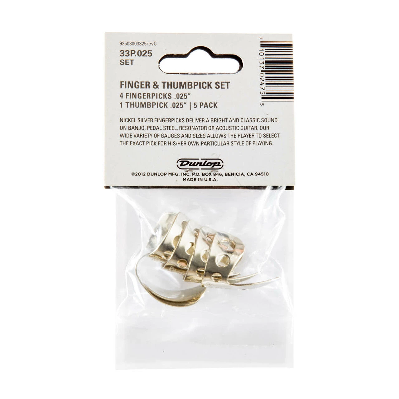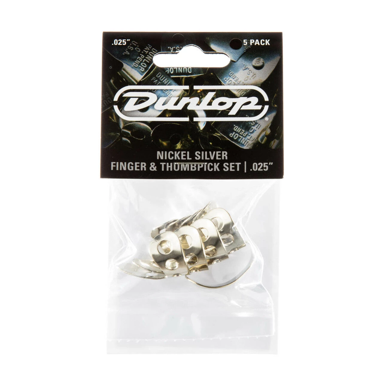 Nickel silver fingerpick (4) and thumbpick (1) deliver a bright and classic sound on banjo, pedal steel, resonator or acoustic guitar.