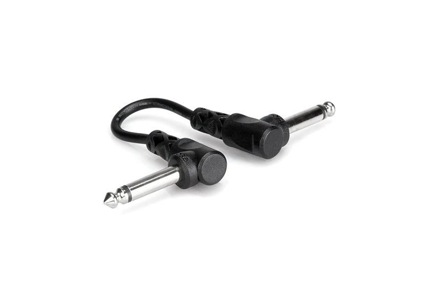 This molded right-angle to same cable is designed to interconnect electric guitar pedal effects. Right-angle plugs allow close spacing of pedal effects on pedalboards. Features include: