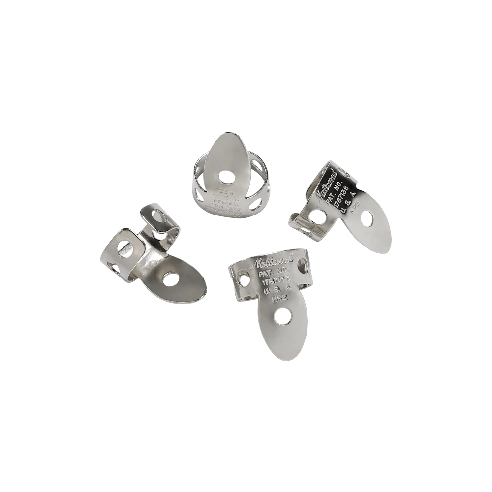 National Nickel Finger Picks produce a smooth, moderately bright tone, with increased volume and clarity in every touch. Each finger pick is moldable to fit securely on every player’s fingers.