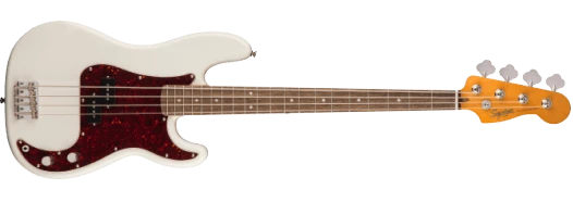 A tribute to the decade that made the P Bass® an icon, the Classic Vibe ‘60s Precision Bass® embodies the aesthetics of the original and produces massive tone courtesy of its Fender-Designed alnico split-coil pickup. Player-friendly features include a slim, comfortable “C”-shaped neck profile with an easy-playing 9.5”-radius fingerboard and narrow-tall frets, as well as a vintage-style bridge with threaded saddles. This throwback Squier model also features 1960s-inspired headstock markings, rich-looking nickel-plated hardware and a slick vintage-tint gloss neck finish for an old-school vibe.