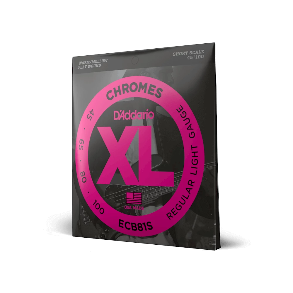 ECB81S is a light gauge flat wound string set for short scale electric bass. XL Chromes are noted for their smooth feel and warm, mellow tone, essential to the sound and style of many jazz, blues, and rock players.