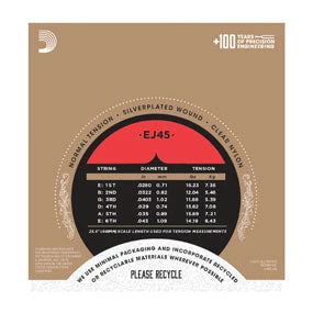 EJ45, normal tension, is D’Addario’s best selling classical set, preferred for its balance of rich tone, comfortable feel and dynamic projection.
