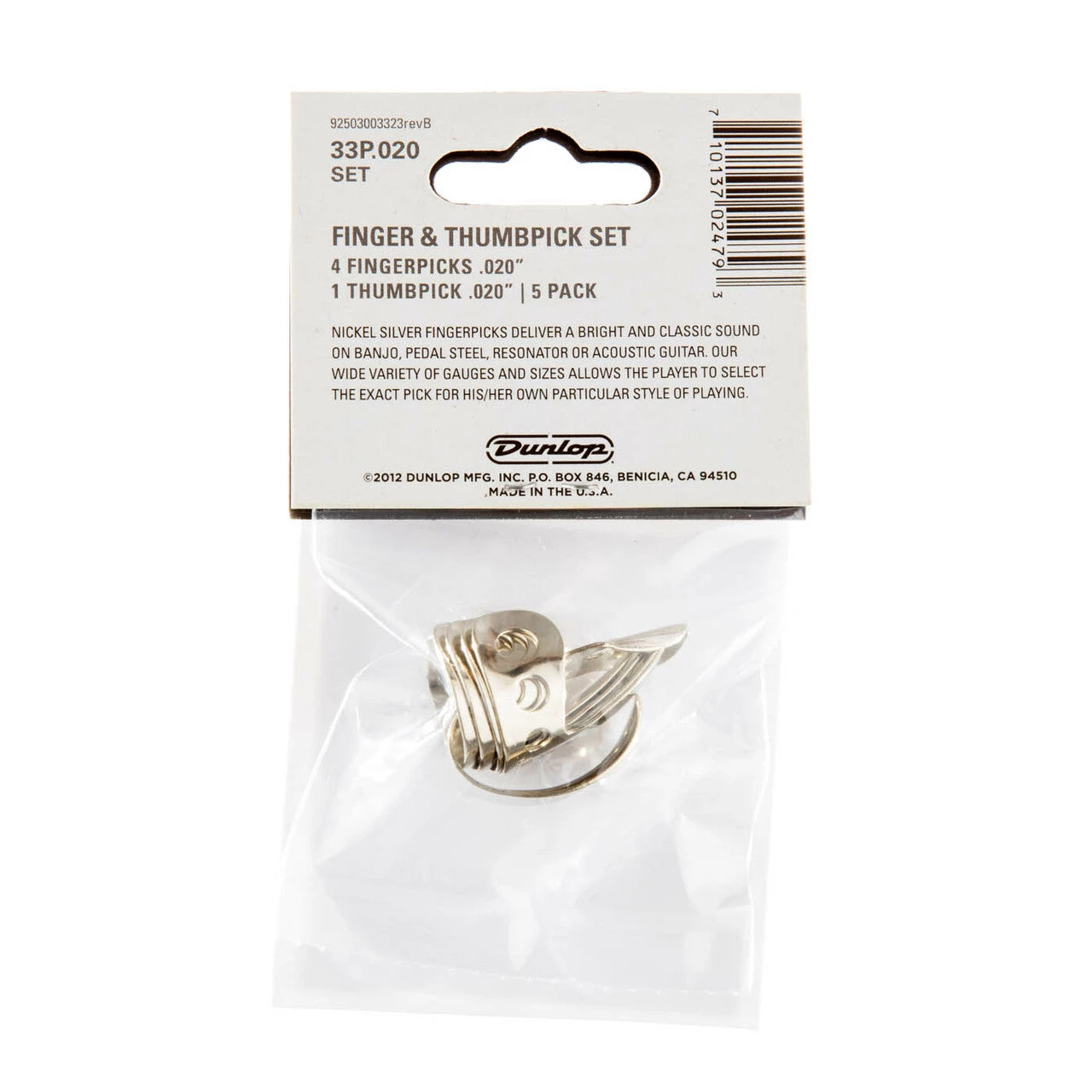 Nickel silver fingerpicks (4) and thumbpick (1) deliver a bright and classic sound on banjo, pedal steel, resonator or acoustic guitar.