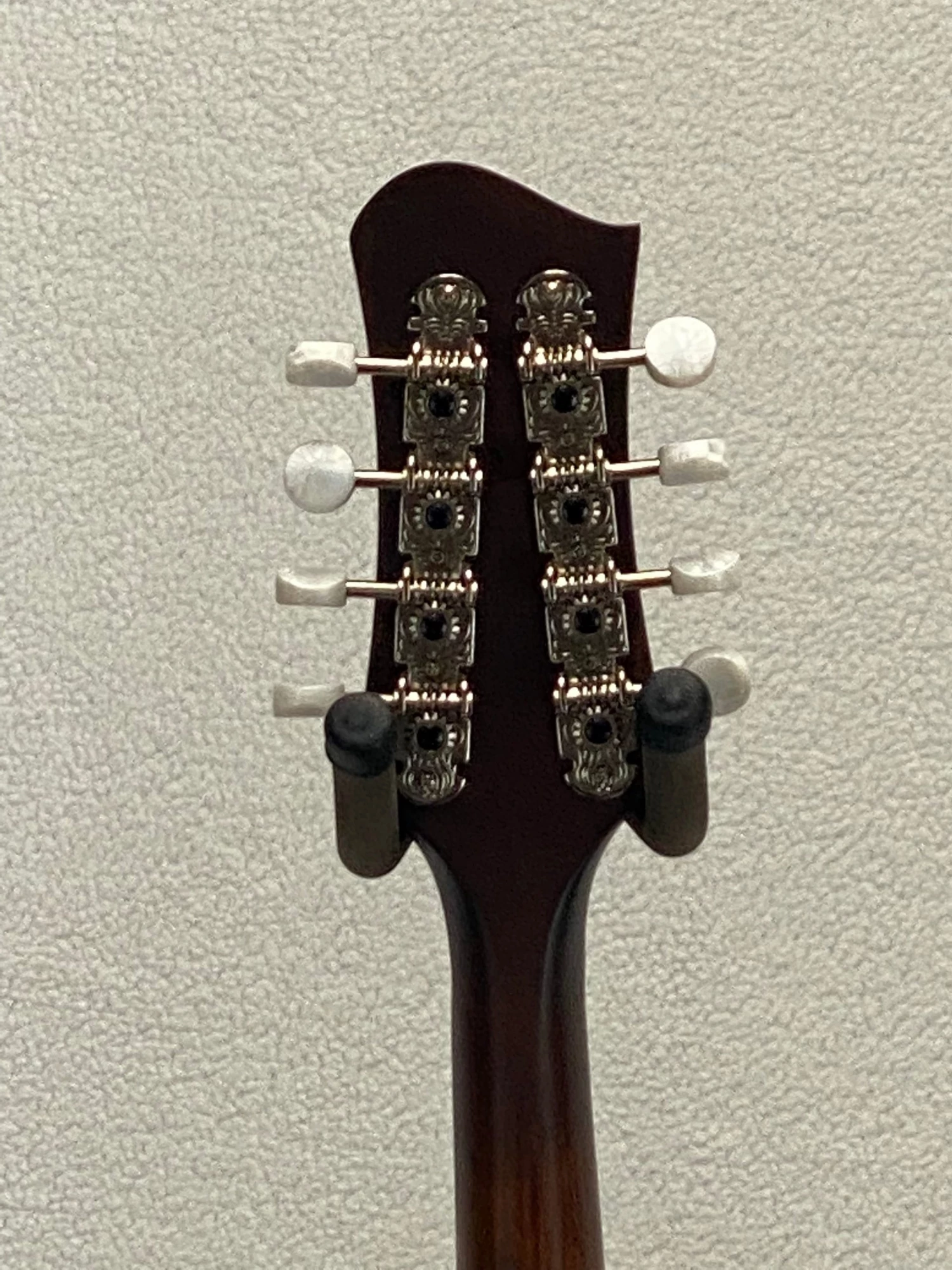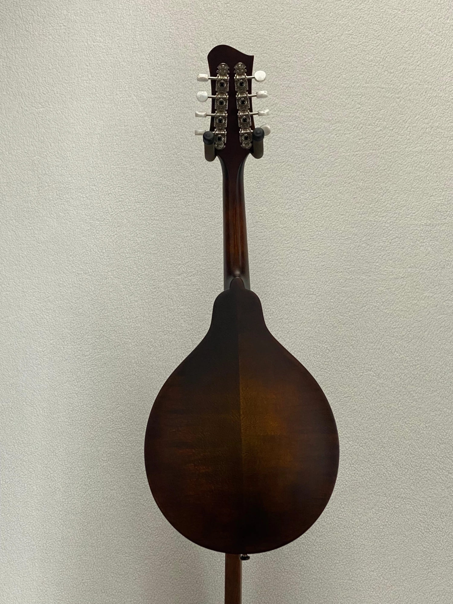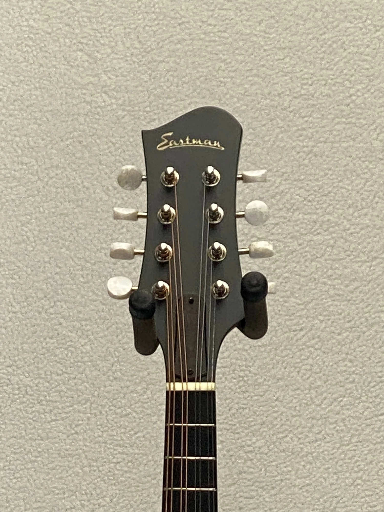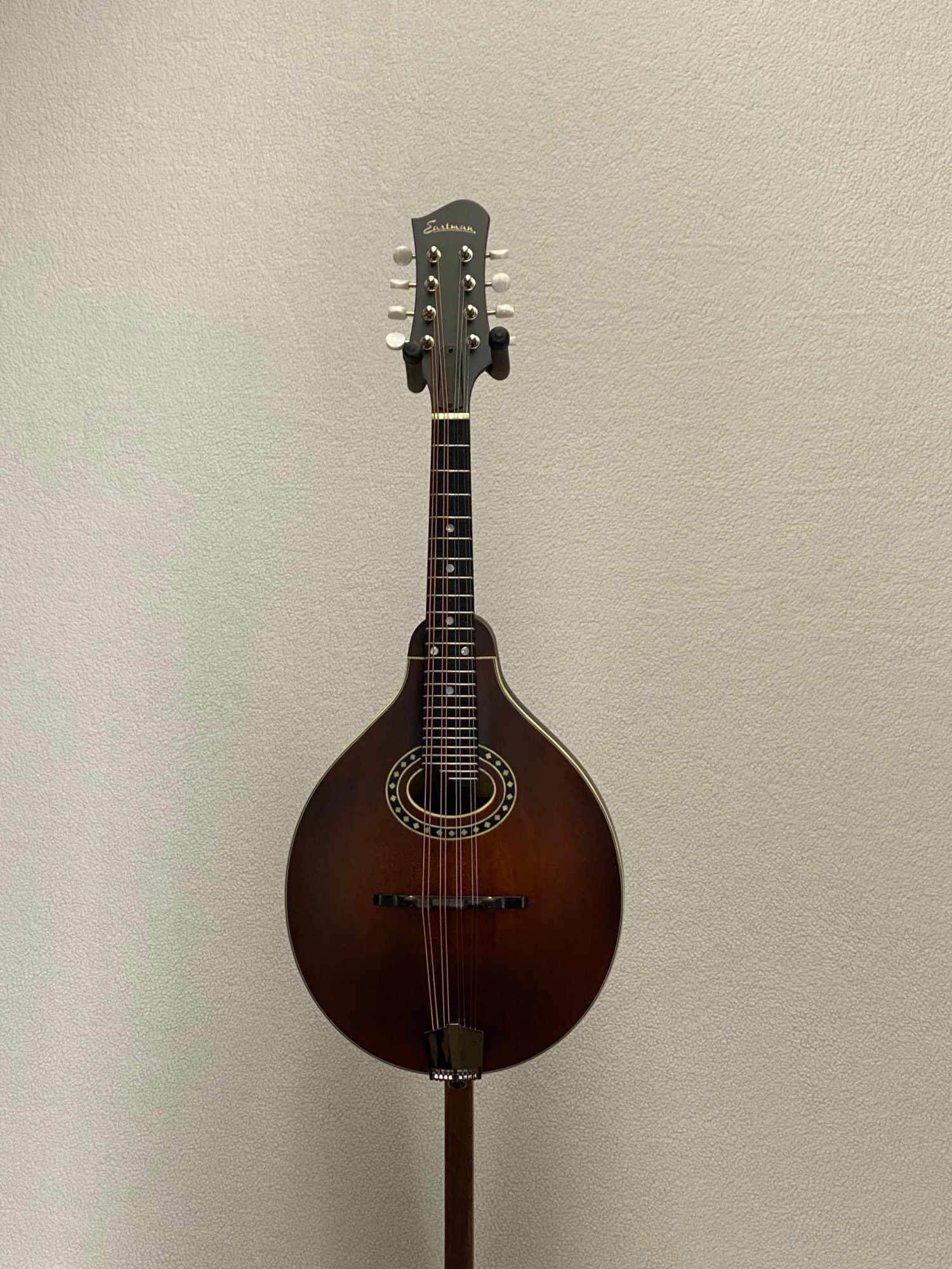 Eastman’s MD304 A-style mandolin features a oval sound hole, solid spruce top, solid maple back & sides, nitrocellulose matte finish, maple neck with rosewood fingerboard, adjustable ebony bridge, cast aluminum tailpiece, single acting truss rod, ivoroid binding, an oval soundhole with diamond pattern rosette, and a padded gig bag.