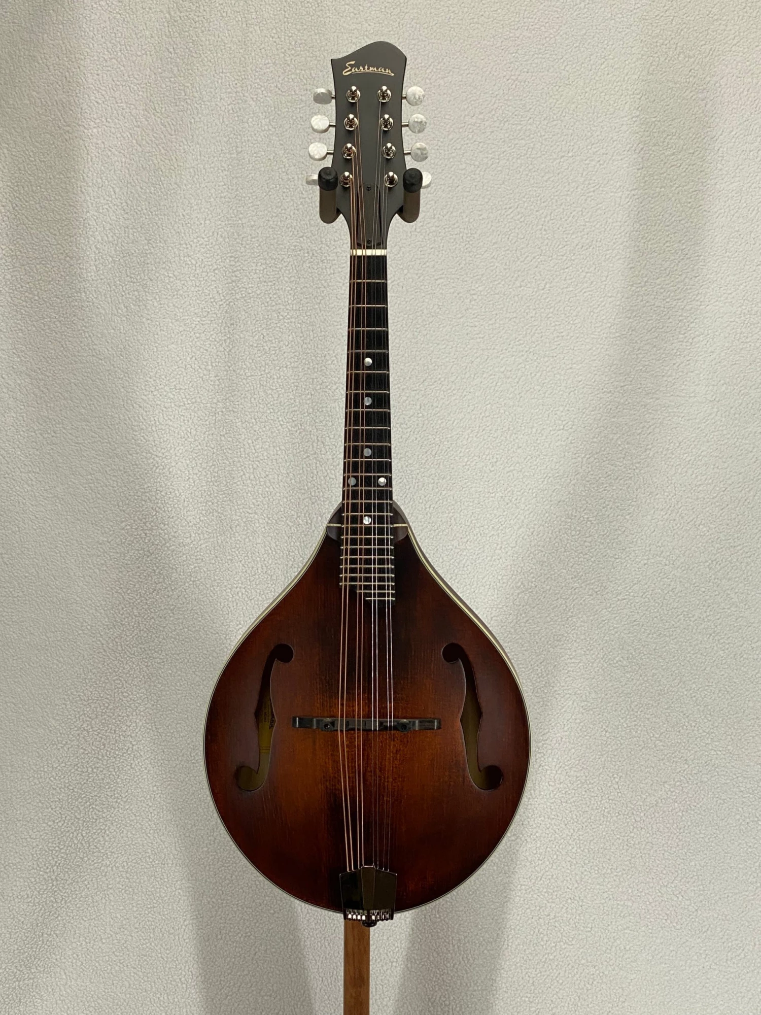 Eastmanโs most affordable A-style mandolin with F-holes, the MD305 features a solid spruce top, solid maple back & sides, maple neck with ebony fingerboard, ivoroid binding, chrome hardware, bone nut, and a padded gig bag.ย