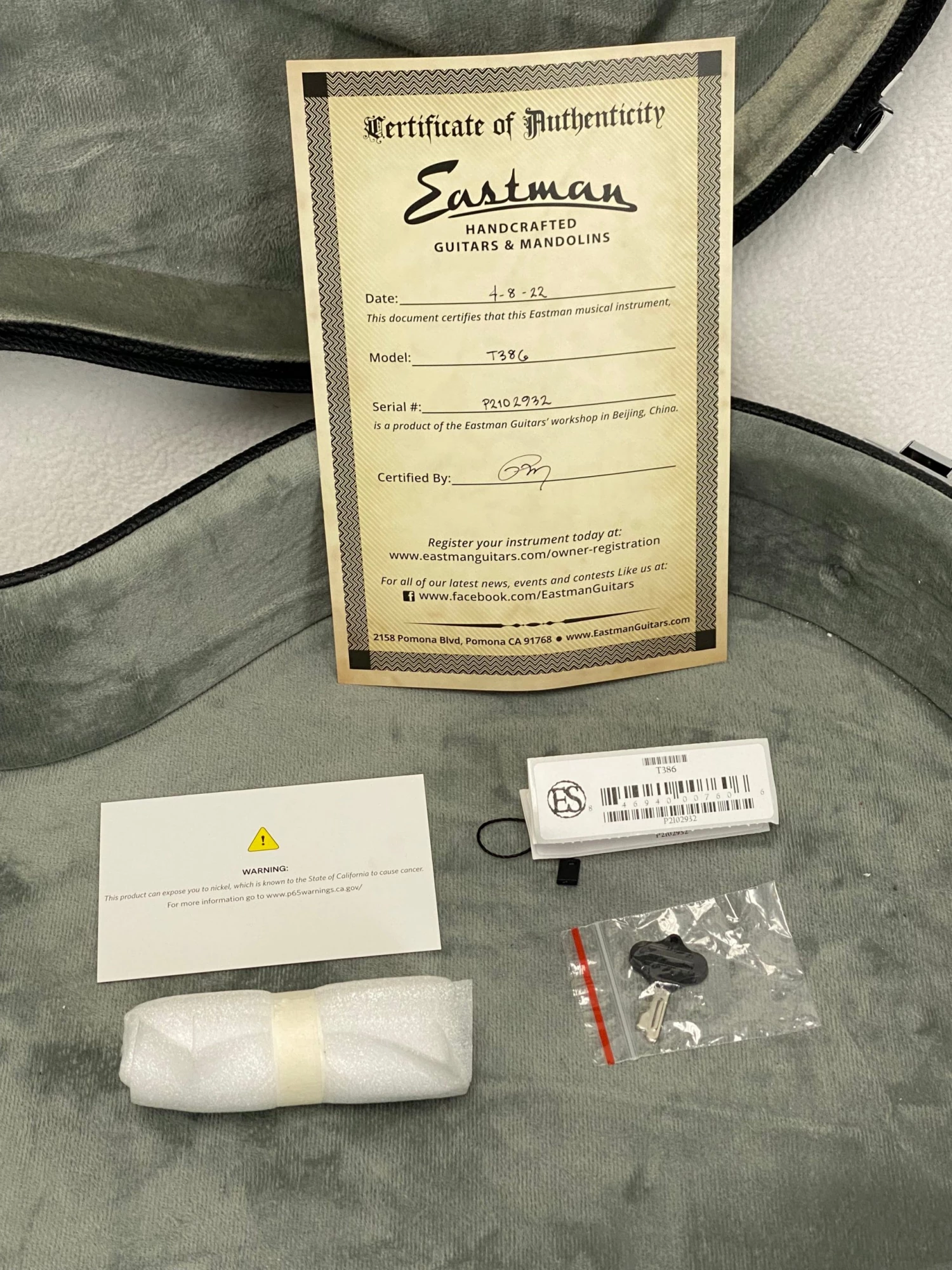 The Eastman T386 is great guitar for jazz, blues or rock players with a comfortable Even “C” neck profile, Kent Armstong pickups that give a full and rich sound and it comes with a hardshell case.