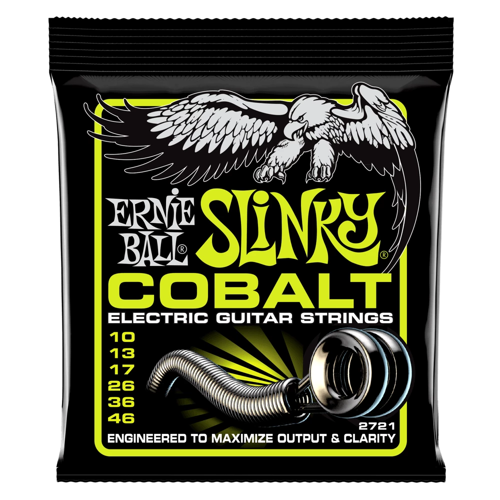 Engineered to maximize output and clarity, Ernie Ball Cobalt Slinky Guitar Strings are the latest innovation in string technology. Seeking to provide guitarists with a new voice, Cobalt strings provide an extended dynamic range, incredible harmonic response, increased low end, and crisp, clear highs. Cobalt provides a stronger magnetic relationship between pickups and strings than any other alloy previously available. Cobalt Slinkys are also soft and silky to the touch, making string bending a breeze. Gauges .010, .013, .017, .026, .036, .046
