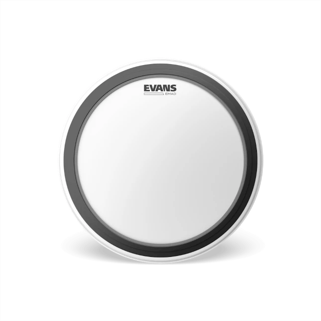 Evans coated EMAD batter series features a 10mil of single-ply film providing an ideal balance of punch, power and low-end. The EMAD contains two interchangeable damping rings that maximize attack and low-end without removing the head or reaching inside the drum. The unparalleled industry standard externally mounted adjustable damping system allows the player to adjust attack and focus.