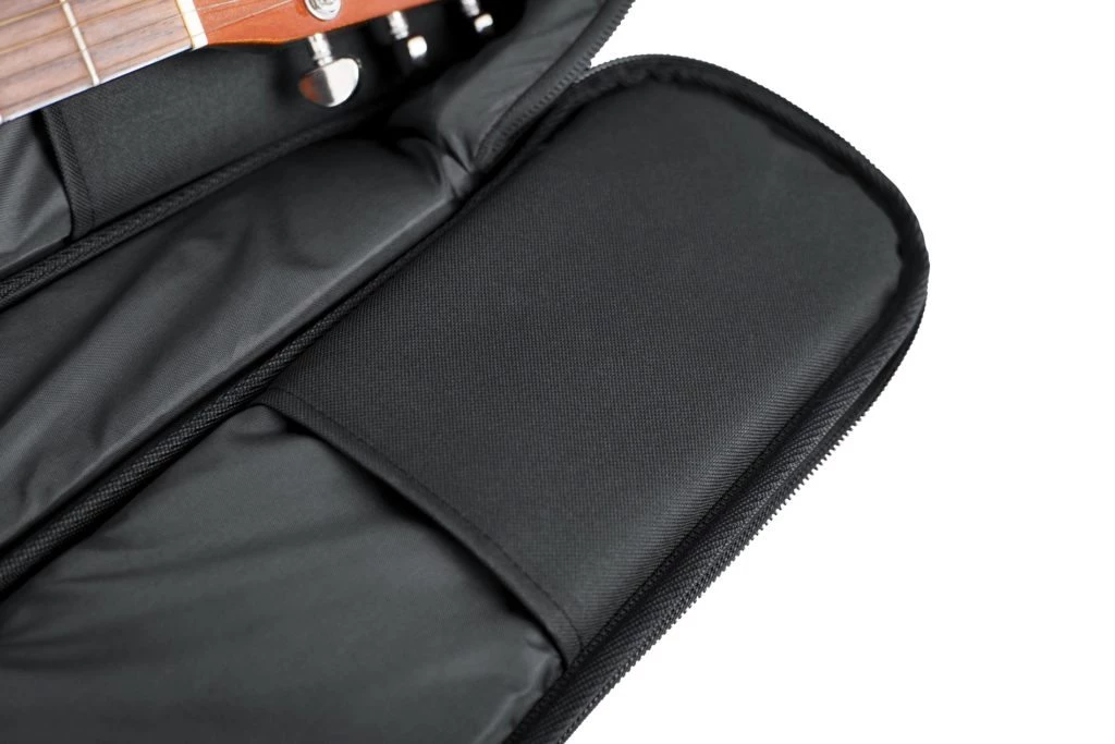 - Large Exterior Pocket with Mesh storage Perfect for Sheet Music, Strings, Capo, Etc.