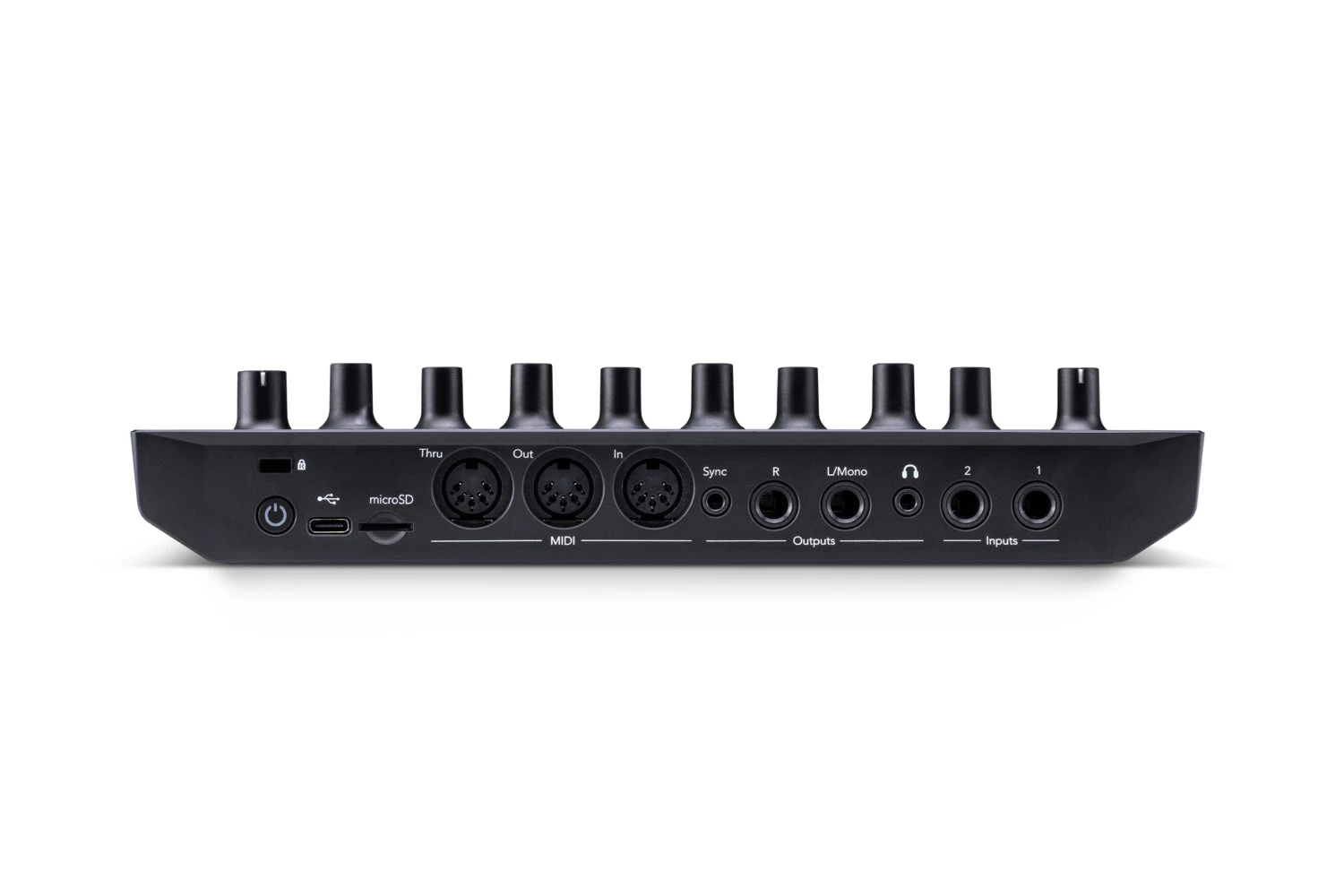 Equally at home alone or among other music machines, Circuit Tracks is a versatile team player. Full-size MIDI in, out, and thru, plus analogue sync out, complements other gear. Two MIDI sequencer tracks let you control and program your external equipment from drum machines to effects units. Audio inputs let you bring all your sounds into the Circuit Tracks environment. Outputs provide monitoring options for all occasions.