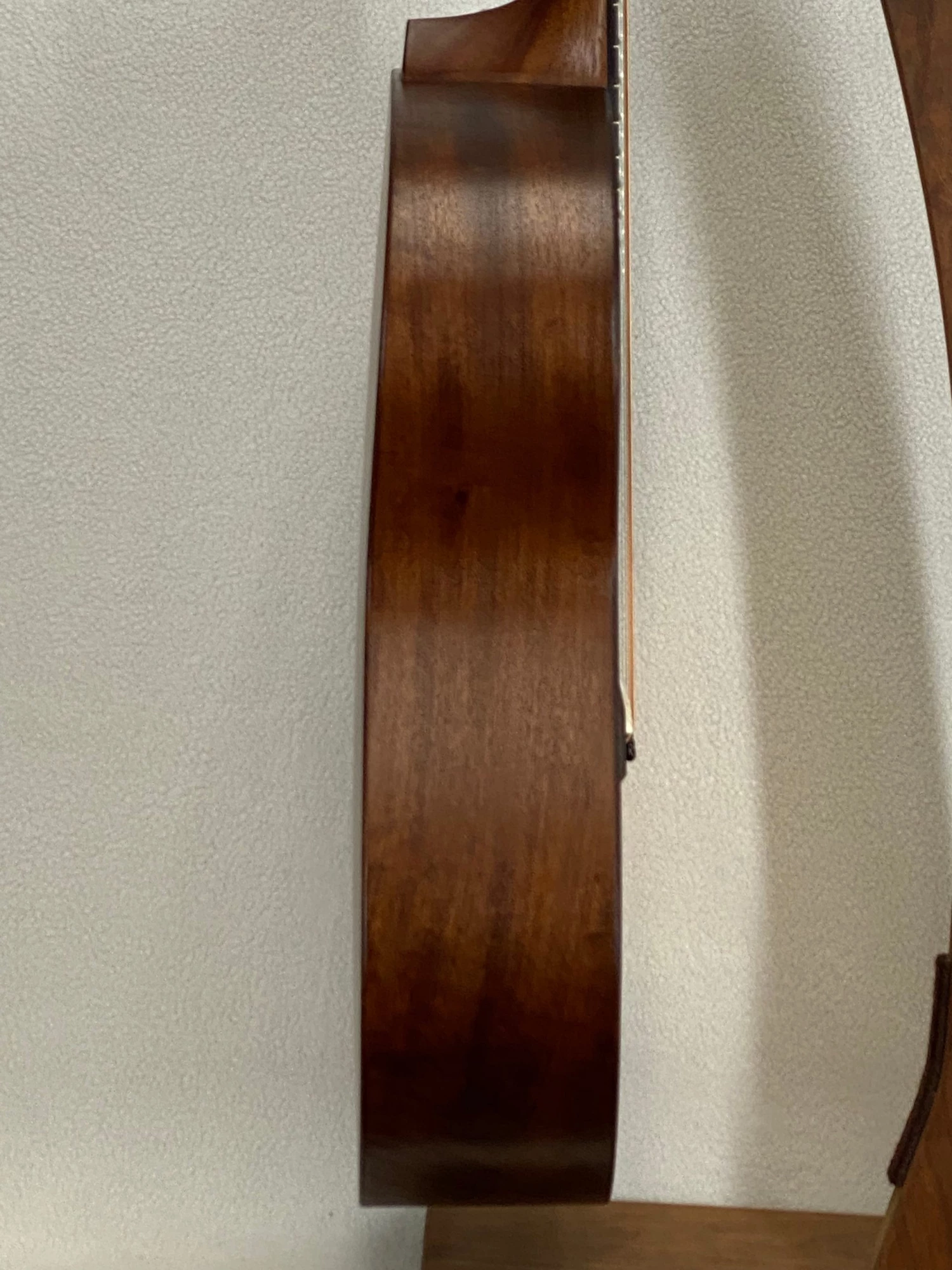 This Grand Pacific model is the first of our round-shoulder dreadnoughts to feature back and sides of solid ovangkol, an African tonewood that shares rosewood’s warmth and brilliance with additional presence in the midrange. Topped with solid spruce, the AD17 serves up a blend of sparkle and clean low-end power, enhanced by V-Class bracing for greater volume, longer sustain, and a more in-tune sound. That seasoned, vintage-hued tone is reflected in this model’s strikingly classic look, with a natural top and a deep Urban Sienna color treatment for the ovangkol back and sides. Minimally decorated but finely crafted, the AD17 also features chamfered body edges, stained spruce edge trim, a three-ring rosette in Hawaiian koa, and a faux tortoiseshell pickguard. The 2.0 mil-thick matte body finish minimizes damping for unfettered resonance. It ships in a Taylor AeroCase.