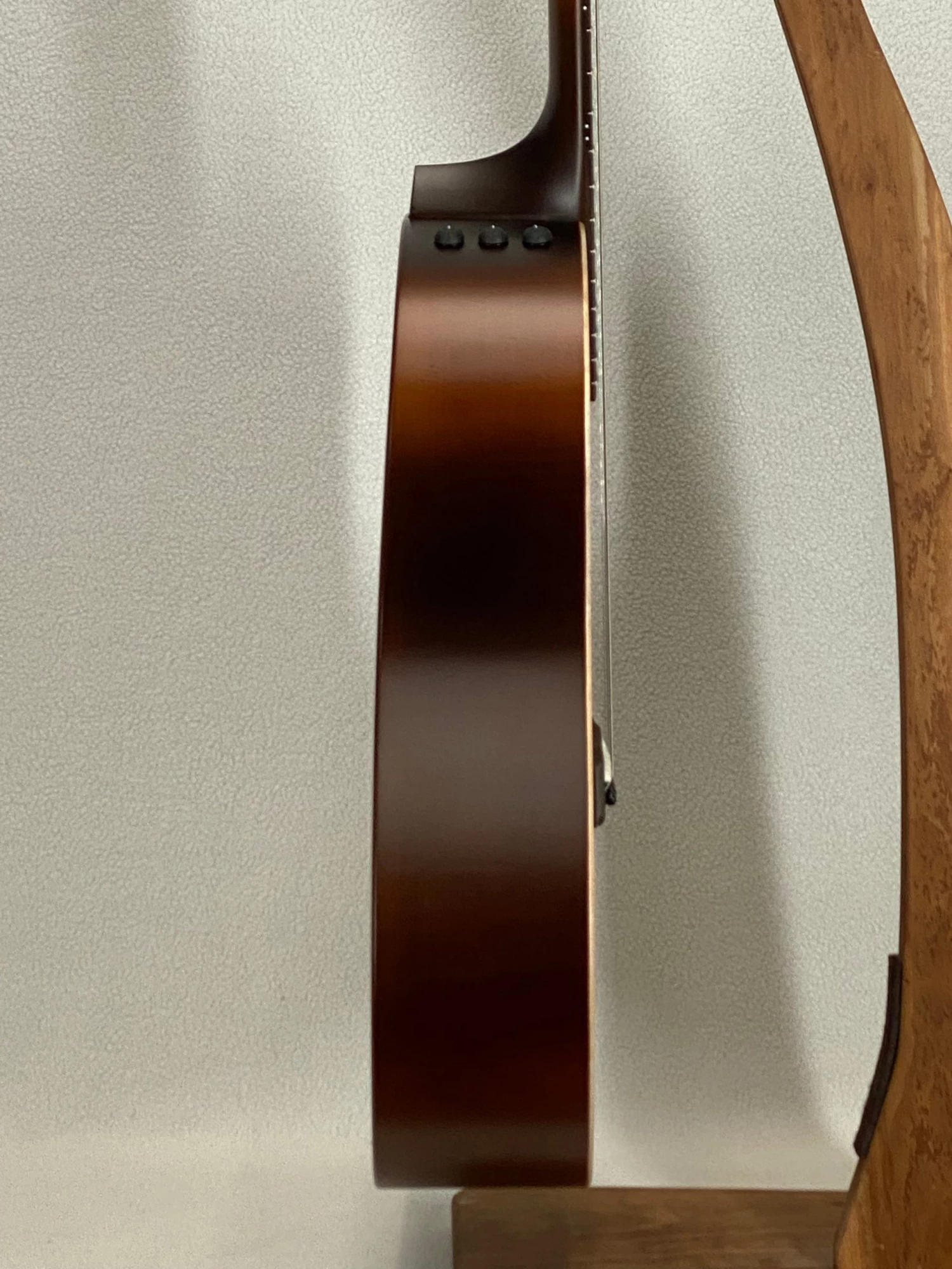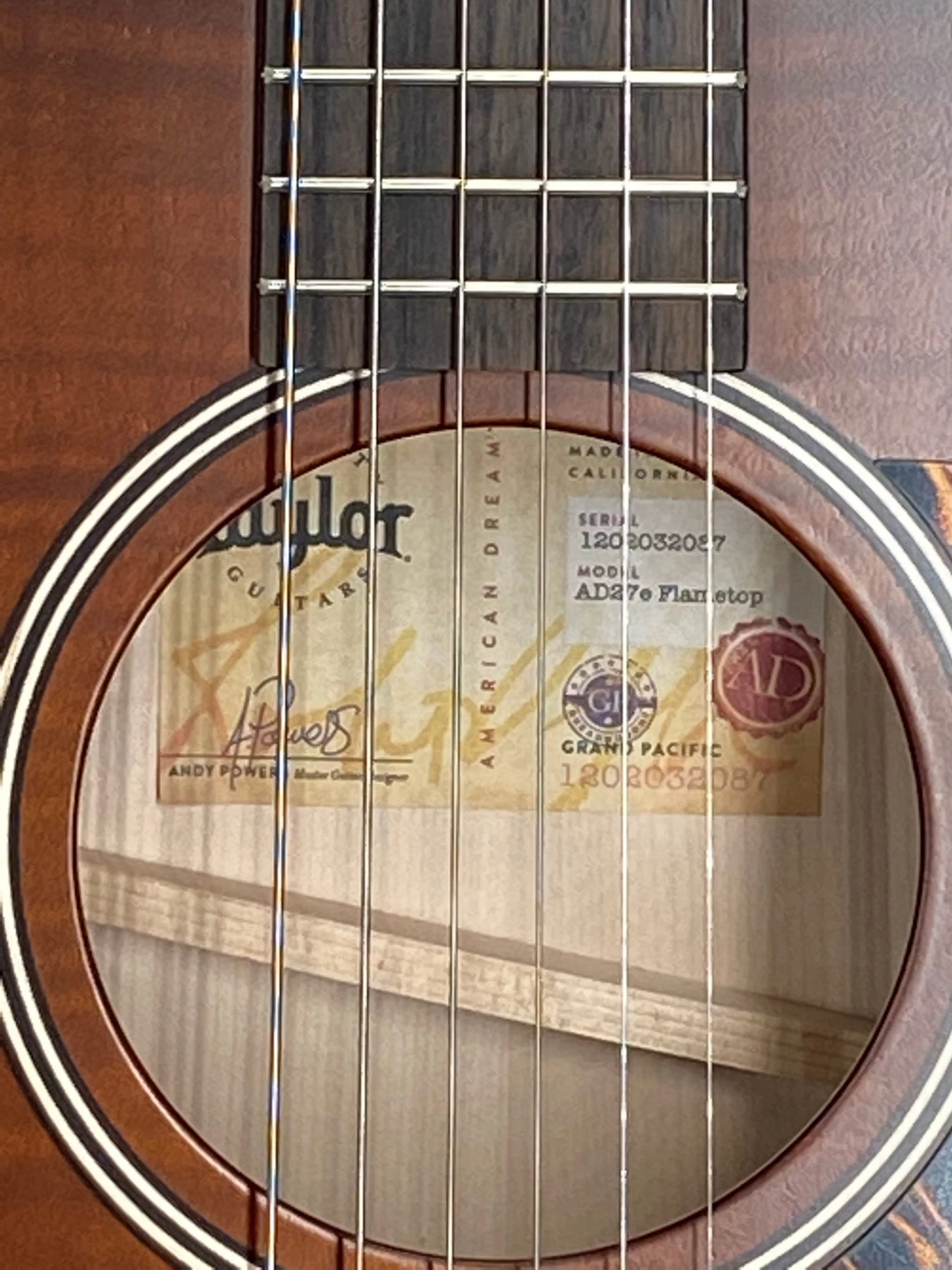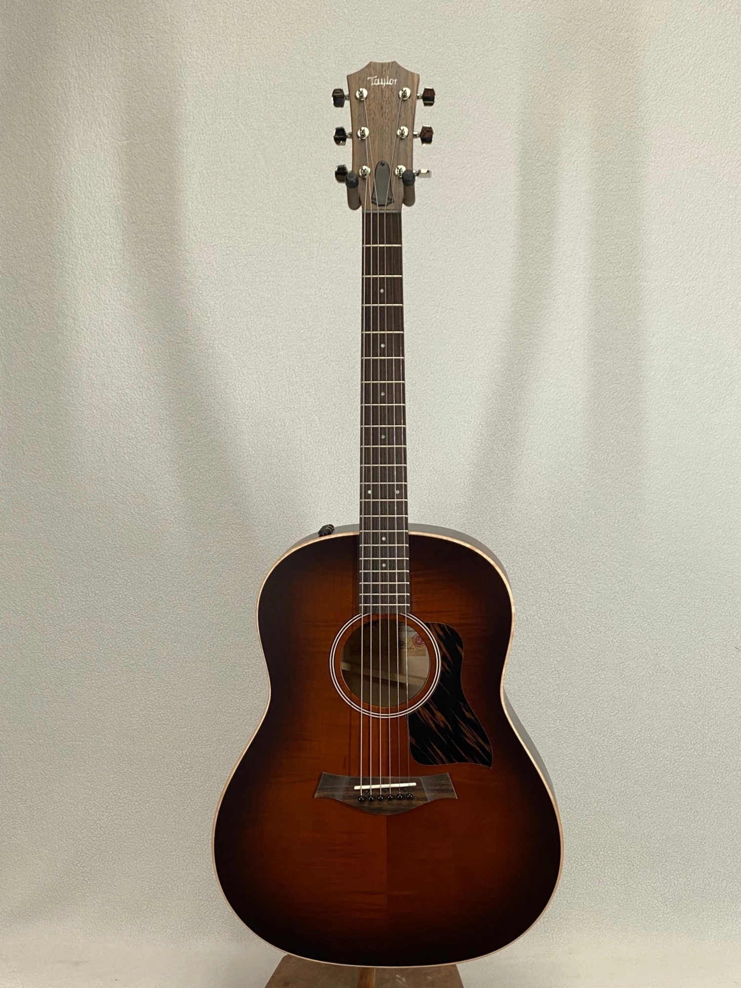 Just as the Grand Pacific body shape introduced a new kind of seasoned tone to the Taylor line, the AD27e Flametop brings a new sonic flavor with an earthy, broken-in character. This dreadnought-style guitar boasts back, sides and top of solid Big Leaf maple, with our V-Class bracing under the hood. Combined with nickel bronze strings from D’Addario, the maple construction results in an appealingly rustic sound that’s totally distinct from the pristine, vibrant quality that many players associate with Taylor. Visually, the AD27e Flametop offers a rootsy, workmanlike vibe that fits right in with its siblings in the American Dream Series, with maple’s beautiful figuring complemented by a dusky Woodsmoke finish and a satin sheen. It’s available both with and without ES2 electronics and ships in a lightweight, super-sturdy AeroCase.